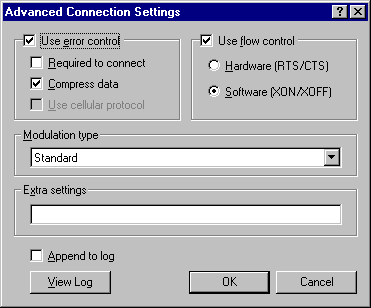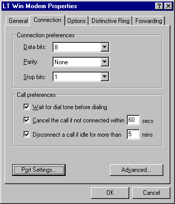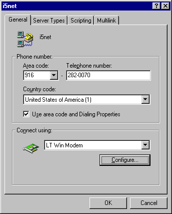 Right mouse-click the icon for your I5NET connection and select "properties" to bring up your connection window: Select the "Configure" button for your modem to bring up the modem properties window: Switch pages tot he "Connection" TAB. Down at the bottom of this page are two buttons ... You can't wait to press them can you? First go to port settings... Your settings if still at the default ones will read the second to the maximum for the receive buffer and the maximum for the transmit buffer. TRY DROPPING EACH OF THESE A NOTCH like shown above. Don't worry, you'll never notice a speed performance drop. Actually things will probably work faster because you'll have a more constant data flow stream. HIT OK when done. Usually this is enough to get things flowing right again with your system, however, if you still can't maintain a good connection and you've tried re-booting your system, then try changing the flow control setting to software. Note: not all of our service numbers will accept this setting on your system and they may not allow you to log-in if you make this change. However, I can tell you from my experience, I run a network with ten engineers through one shared 56K v.90 modem, and we seldom experience connection problems with the above settings and the Flow Control set to "SOFTWARE" as shown below: (the flow control setting is found in the "Advanced" button of the modem connection properties.